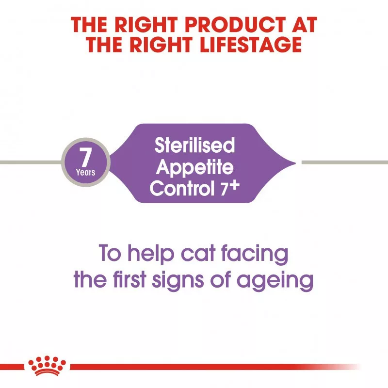 Teljes értékű, kiegyensúlyozott táp ivartalanított, 7 évesnél idősebb macskák részére (7-12 éves korig). Az ivartalanítás által előidézett élettani változások befolyásolják a macska mindennapi életét, ezért azokat figyelembe kell venni a megfelelő táp kiválasztásakor. Noha az ivartalanítás átlagosan akár kétszeresére is növelheti a macska várható élettartamát, egyben megnöveli annak a kockázatát is, hogy a macska túlsúlyossá válik. Az ivartalanítást követően csökken az energiaszükséglet, a macska étvágya viszont fokozódik.