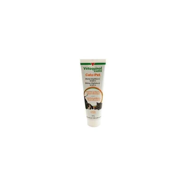 Alapanyagok: olajok, zsírok, gabonafélék, cukor, vitaminok, nyomelemekA Calo-pet paszta koncentrált energiabevitelt tesz lehetővé étvágytalanság vagy betegség esetén, ugyanakkor javítja az étvágyat és így segíti a táplálék felvételét. Összetétel:- Vitaminum A 20 000 NE- Vitaminum B1 40 mg - Vitaminum B2 4 mg- Vitaminum B6 20 mg- Vitaminum B12 0,04 mg- Biotinium (Vitaminum H) 5 mg- Calcium pantothenicum 40 mg- Nicotinamidum 40 mg- Vitaminum D3 850 NE- Vitaminum E acetylatum 120 mg- Taurinum 400 mg- Ferrum 10 mg- Manganum 20 mg- Magnesium 2 mg- Jodum 10 mg- Excip. Ad 100 gKalóriatartalom: (480 kcal) 2010 kJ pro 100 g.Adagolás: Kutyának 1 evőkanál (15 ml) 10 ttkg naponta.Macskának 1 teáskanál (5 ml) 3-5 ttkg naponta.Malacnak 1-2 teáskanál (5-10 ml) 5 ttkg naponta.Kimaradó táplálékfelvétel esetén 3-4,5 g/ttkg-onkénti mennyiséget adunk egyedüli táplálékként (a napi dózist megkettőzzük vagy megháromszorozzuk). A pasztát az állatnak közvetlenül a szájüregébe vagy az ennivalóval együtt adagoljuk. A beadás az ivóvízzel is történhet.Csomagolás: 120 g, tubusban.