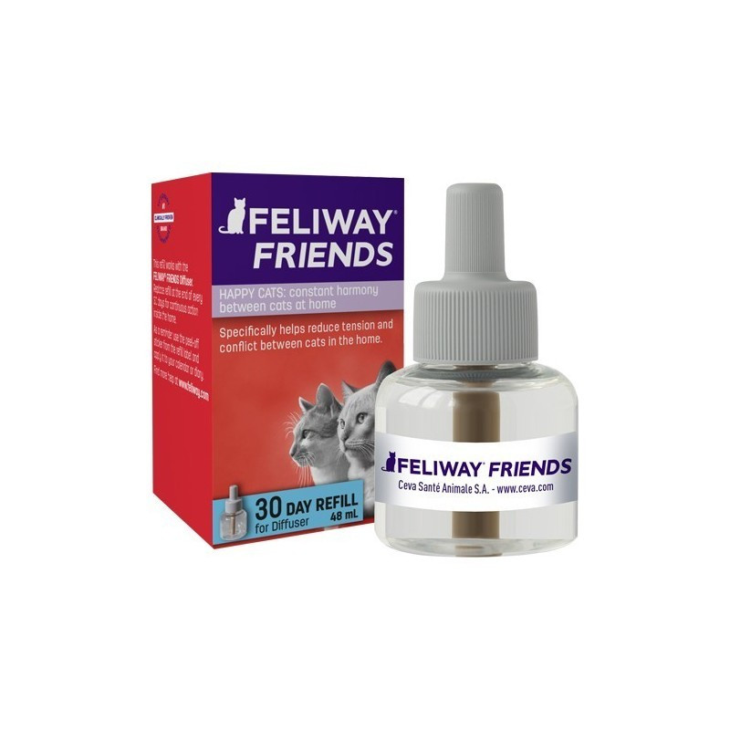 Különösképp a többmacskás háztartásokban, ahol a kandúr & társai csapat szűk területen, nap mint nap együtt él, ugyanúgy, mint az emberek esetében, sok konfliktus keletkezhet. Míg a legtöbb macska rövid kis csetepaté után csak-csak elviseli a többieket, sajnos adódhatnak hosszabb ideig tartó disszonanciák is a macskák között. Korábban az ilyen szituáció idegesítő és megoldhatatlan probléma elé állította a macskatartókat, amit csak egyik állat eltávolításával vagy más kemény lépéssel lehetett orvosolni, manapság már létezik erre is segítség. A FELIWAY®-FRIENDS párologtató a cat-appeasing-pheromones (C.A.P.) szintetikus utánzatát alkalmazza, amely a természetben az anyamacska és kiscicái közötti kötődést hívatott erősíteni, a meghittség érzését kialakítva és segítve. Ezt a szintetikus anyagot oszlatja el optimálisan és hatásnövelően a helyiség levegőjében a permetszóró. A FELIWAY®-FRIENDS párologtató tudományosan igazolt módon már rövid használati idő után javítja a macskák együttélésének milyenségét.