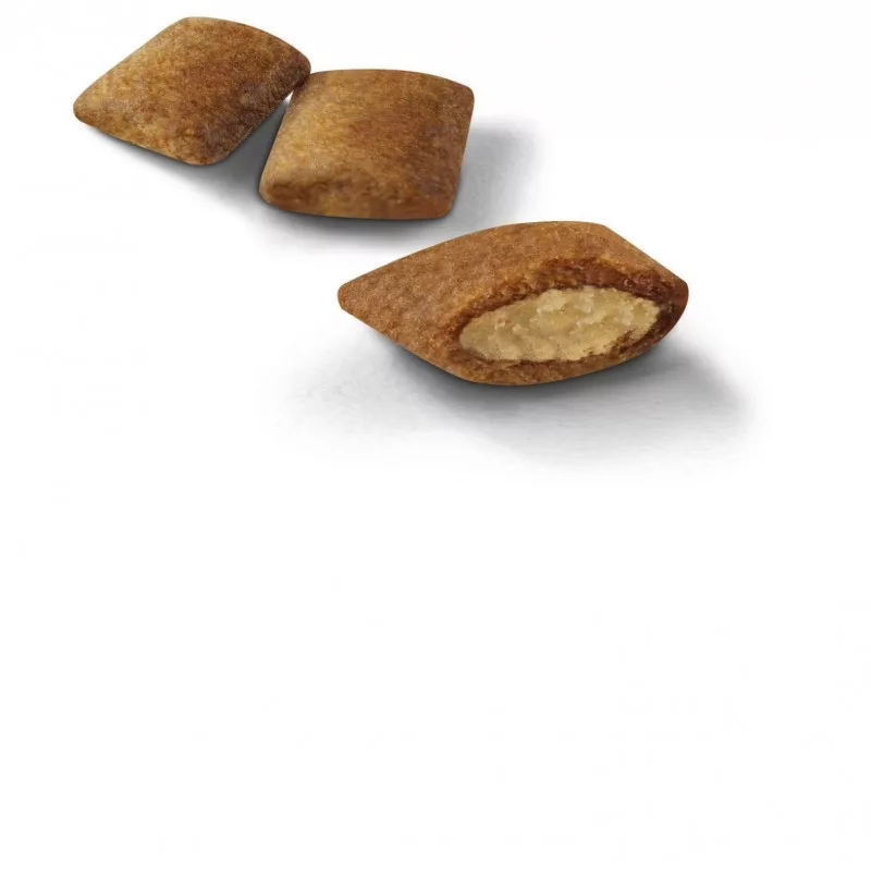 • Kitűnő ízvilág: Két különböző állagot (Kívül ropogós, belül puha) kombináló textúrájának és egyedülálló ízanyag-összetételének köszönhetően a táp kielégíti még a kényes étvágyú, válogatós kutyák igényeit is.