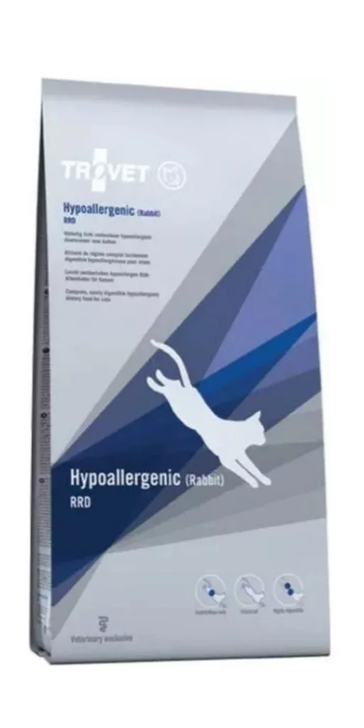 A Trovet nyúlhúsos száraztáp ételallergia vagy ételintolerancia esetén ajánlott. Ez a táp megszünteti az allergiával járó tüneteket, úgy mint a bőr-és szőrproblémákat, az emésztési panaszokat, a hasmenést és a hányást. Segíti az allergiából eredeztethető vakarózás mértékét teljesen lecsökkenteni. A Trovet nyúlhúsos hipoallergén diétás táp alapja az egyféle fehérje (nyúl) és az egyféle szénhidrát (rizs), továbbá az egyéb esszenciális tápanyagok optimális arányban, amelyekre a szervezetnek szüksége van.