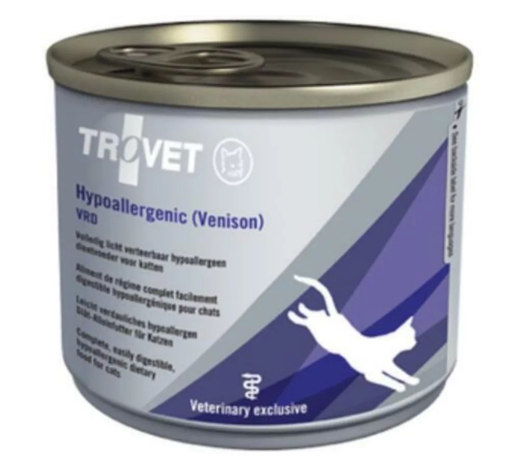 A Trovet szarvashúsos nedves eledele ételallergia vagy ételintolerancia esetén ajánlott. Ez a táp megszünteti az allergiával járó tüneteket, úgy mint a bőr-és szőrproblémákat, az emésztési panaszokat, a hasmenést és a hányást. Segíti az allergiából eredeztethető vakarózás mértékét teljesen lecsökkenteni. A Trovet szarvashúsos hipoallergén diétás táp alapja az egyféle fehérje (szarvas) és az egyféle szénhidrát (rizs), továbbá az egyéb esszenciális tápanyagok optimális arányban, amelyekre a szervezetnek szüksége van.